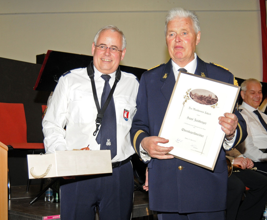 Obmann Christoph Mathis mit Ehrenkapellmeister Hans Zaisberger