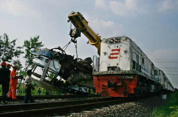 Indonesien: Zug rast in Mini-Bus
