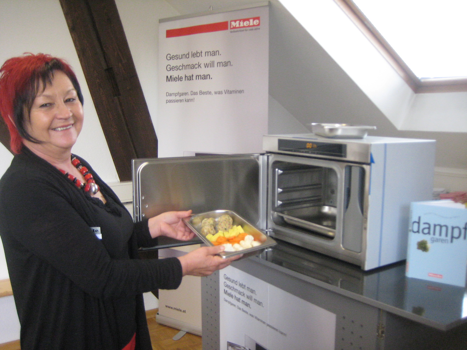 Miele-Fachberaterin Evi Amann bei den Dampfgarvorführungen.