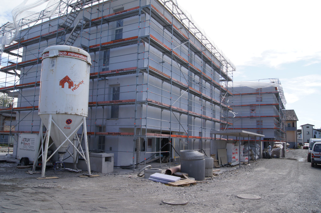Die beiden südseitigen Objekte sind viergeschossig und werden von der Wohnbauselbsthilfe Bregenz erbaut.