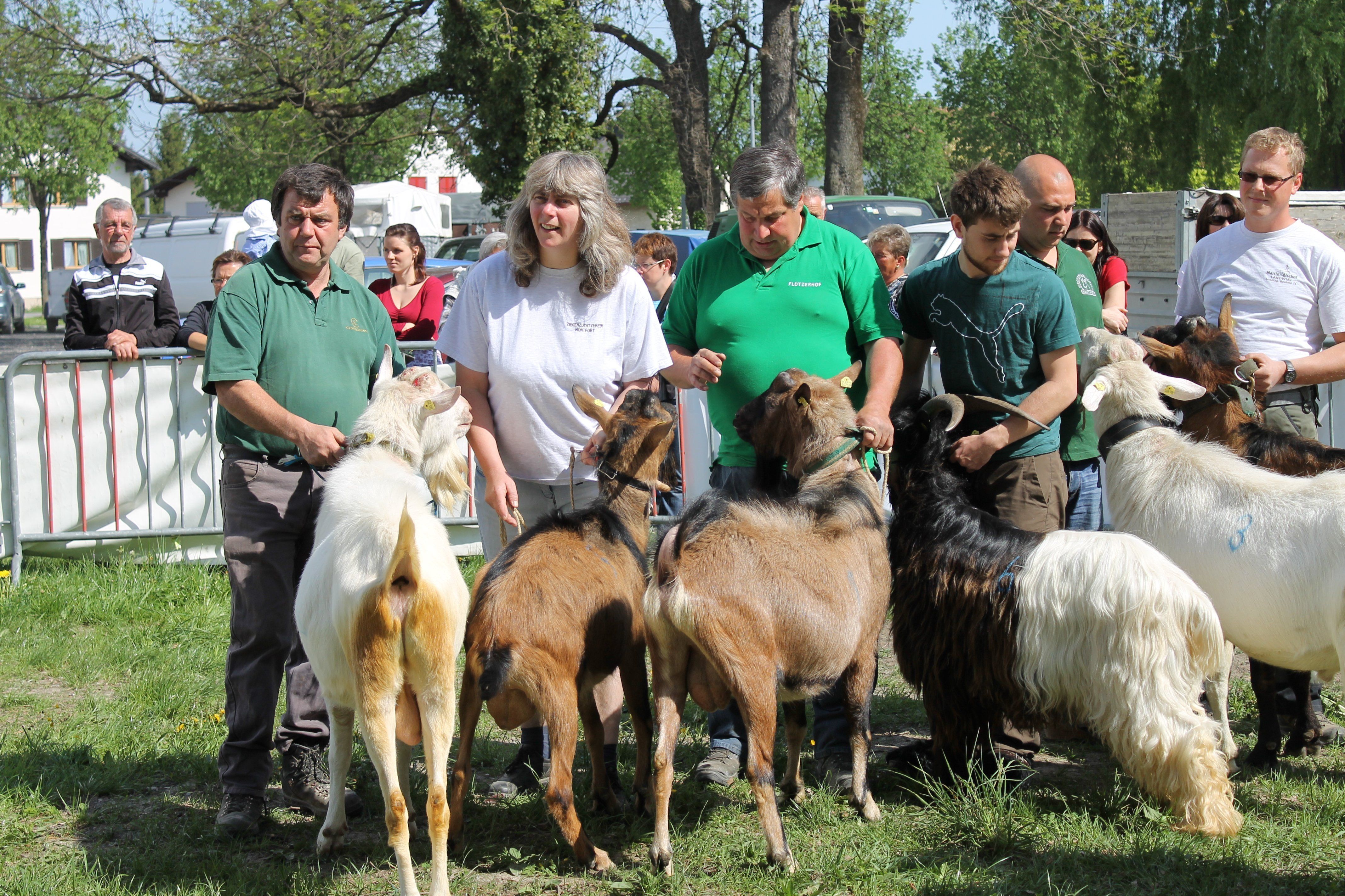 Stolze prämierte Ziegenbesitzer (2.v.l.: Auguste Gassner, Obfrau des Vorarlberger Ziegenzuchtverbands).