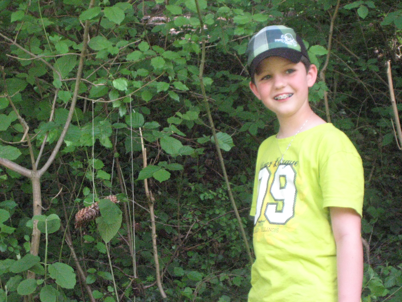 Dominik verzierte die Sträucher mit seinen Kunstwerken.