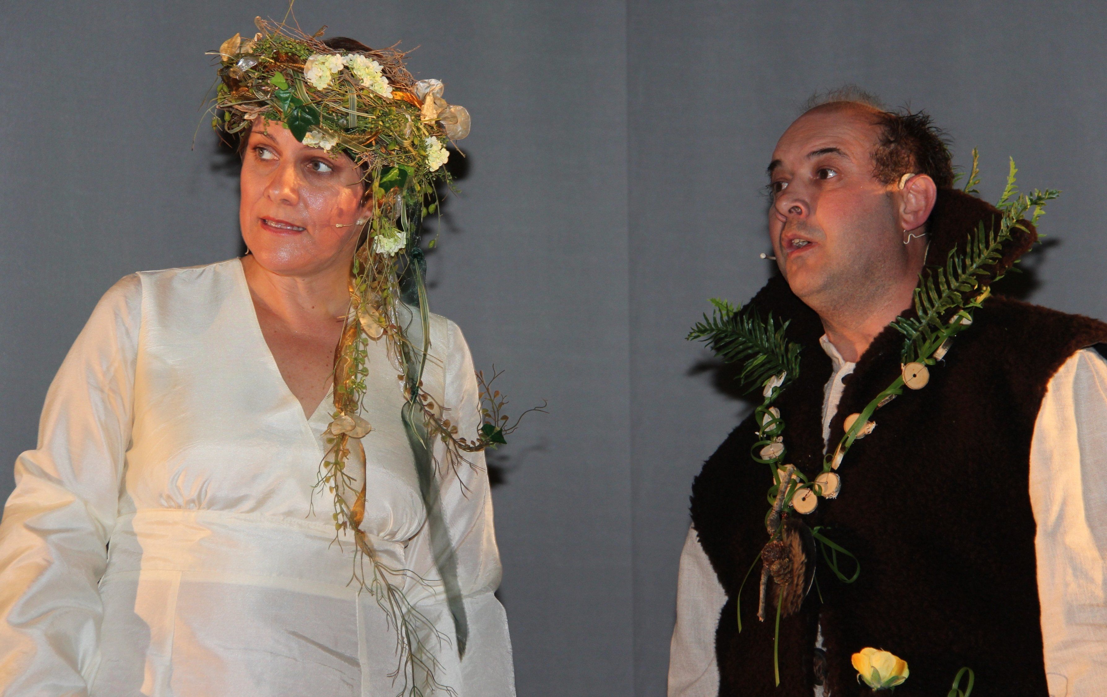 Die Waldfee (gespielt von Sandra Eberle) mit ihrem Waldgeist (Theater Buch - Obmann Gerhard Stofleth).