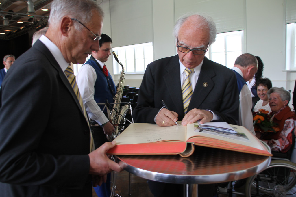 Zahlreiche Ehrengäste schrieben Jubiläumsgrüße in das Vereinsbuch der Liedertafel.