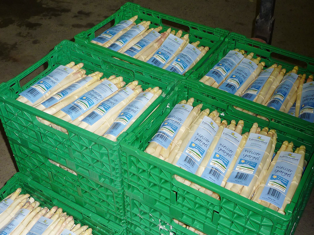 Spargel verpackt und versandfertig