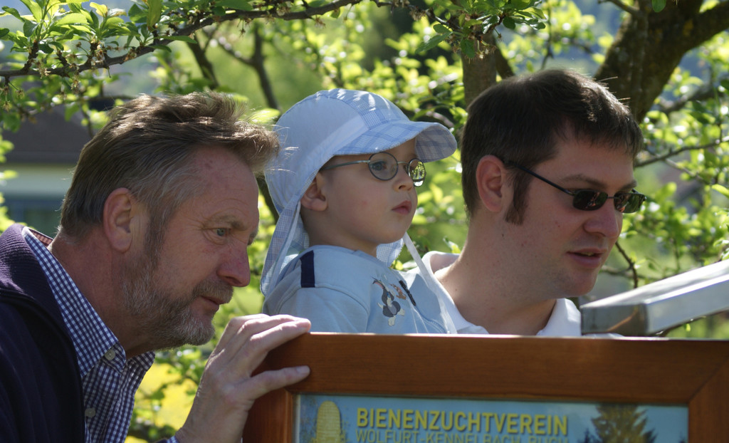 Sepp, Johannes und Stefan nehmen die Bienen in Augenschein...