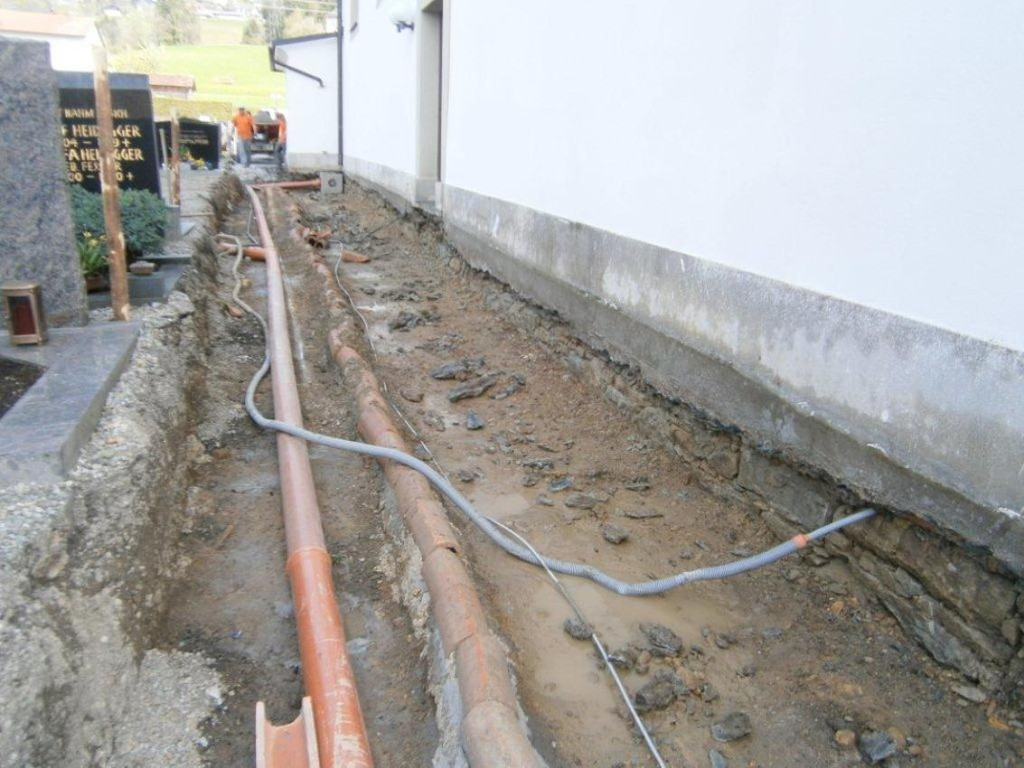 Arbeiten im Umfeld der Pfarrkirche mit Pflasterwegen und Abwasserleitungen