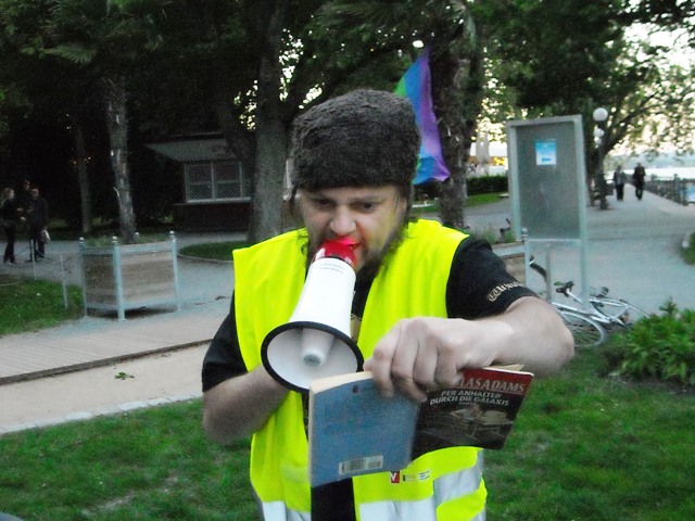 Anhalter-Fans trafen sich um gemeinsam den Handtuchtag zu feiern und dem britischen Autor Douglas Adams zu gedenken.