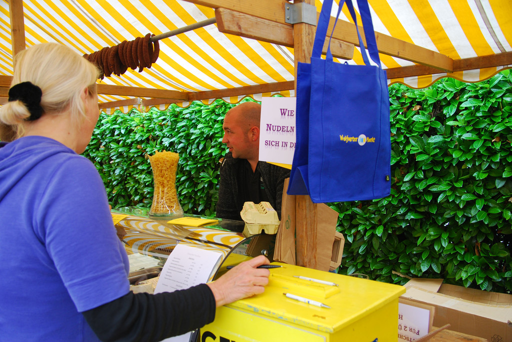 Beliebtes Einkaufsutensil ist die blaue Wolfurter Markttasche.