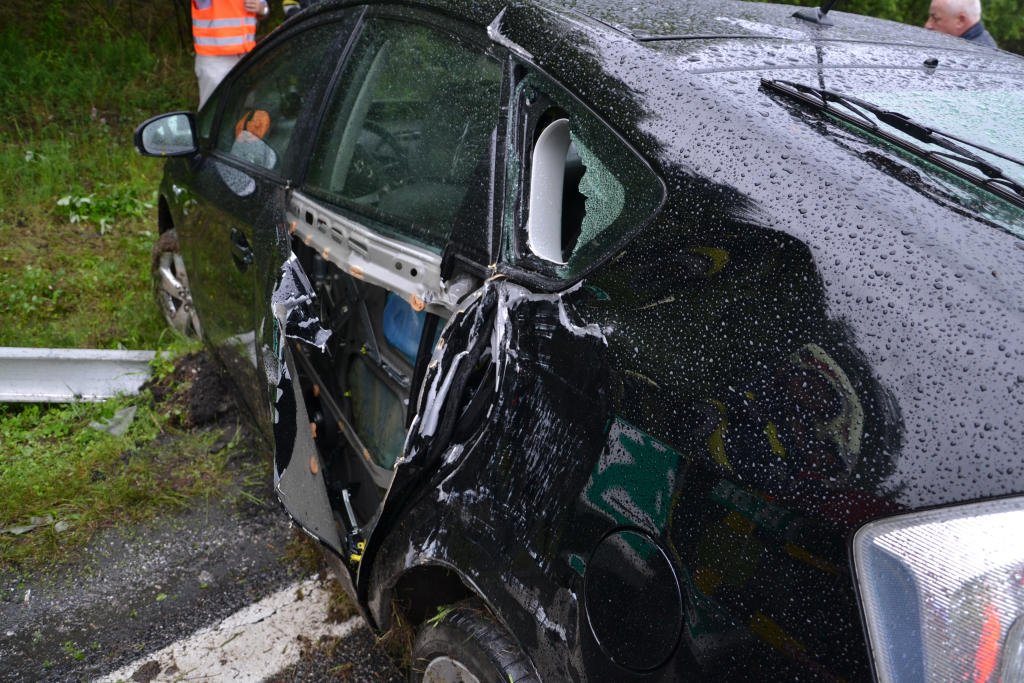 Unfall in Neunkirchen: Auto prallt gegen Hinweistafel