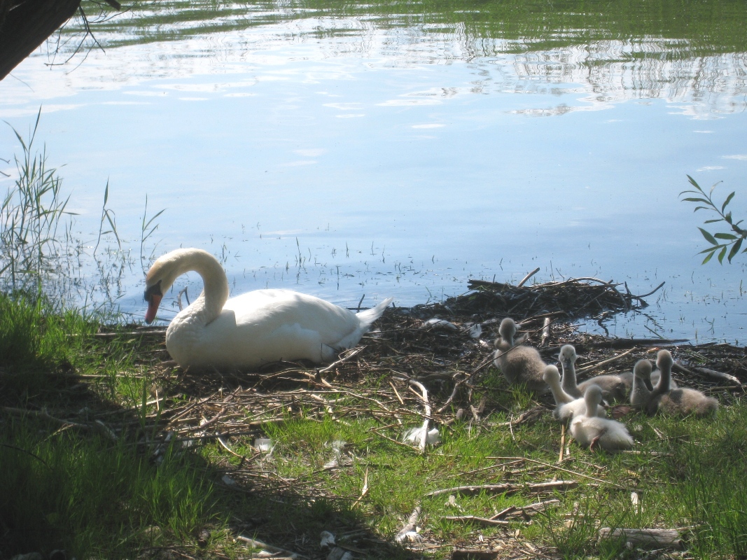 Schwanennest in unberührter Erholungslandschaft