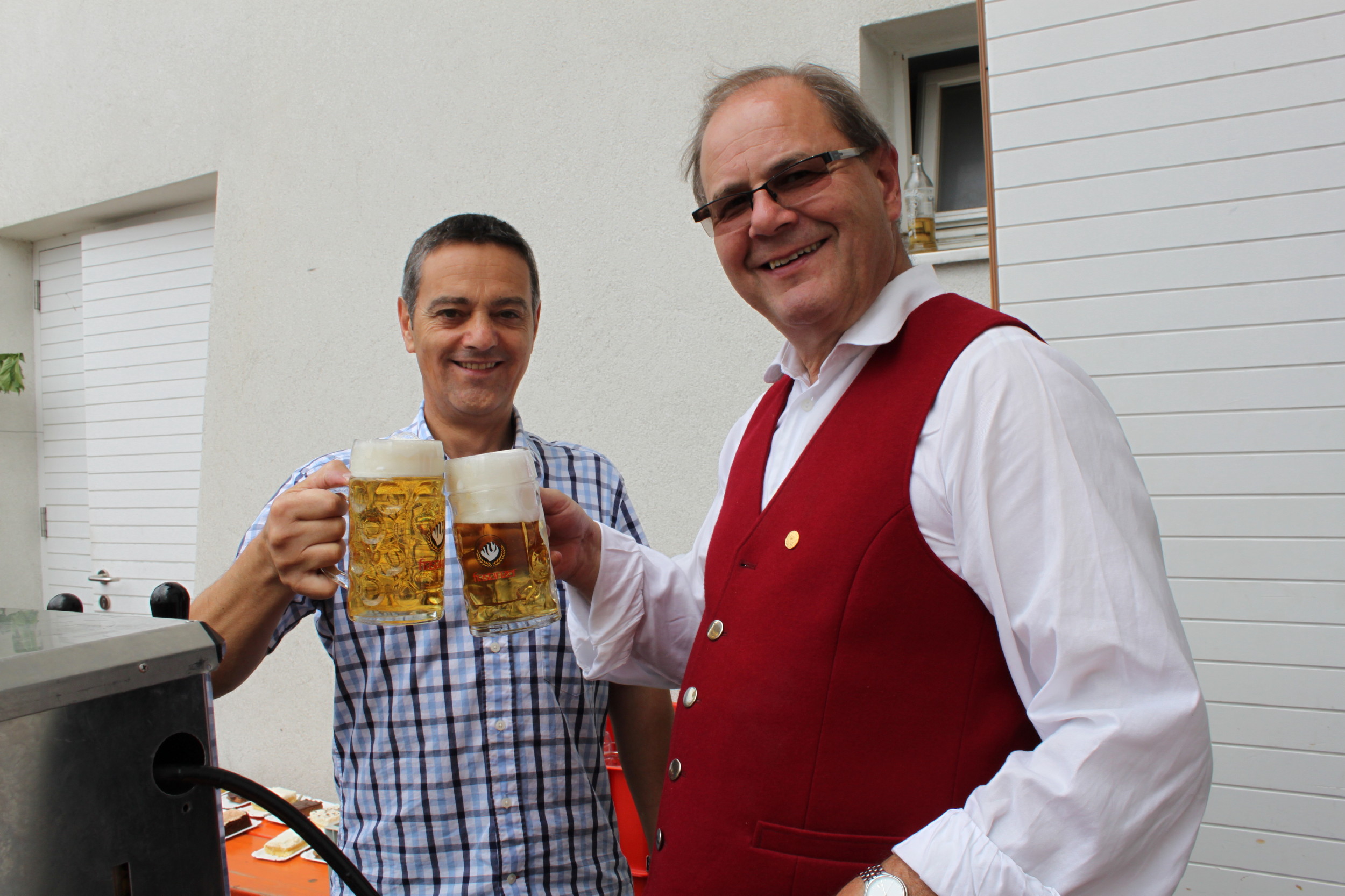 Am Zapfhahn: Bgm. Reinhard Nachbaur (re.) und Lothar Kathan