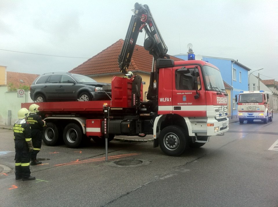 Nach Verkehrsunfall im Bezirk Neunkirchen fing Unfallwagen bei der bergung Feuer