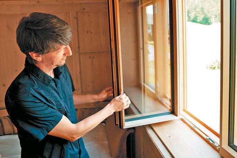 Stolz des Bauherrn, Architekten und Erneuerers: das neue Wälderfenster mit seinen extrem schmalen Ansichtsprofilen. Wie er den Drehpunkt bloß hingekriegt hat? © Christian Grass | vai