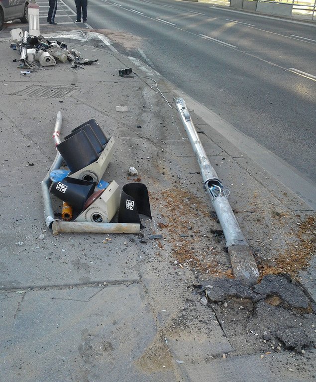 Leserreporter: Schwerer Unfall bei der Urania: Lenker fährt Ampelanlage um