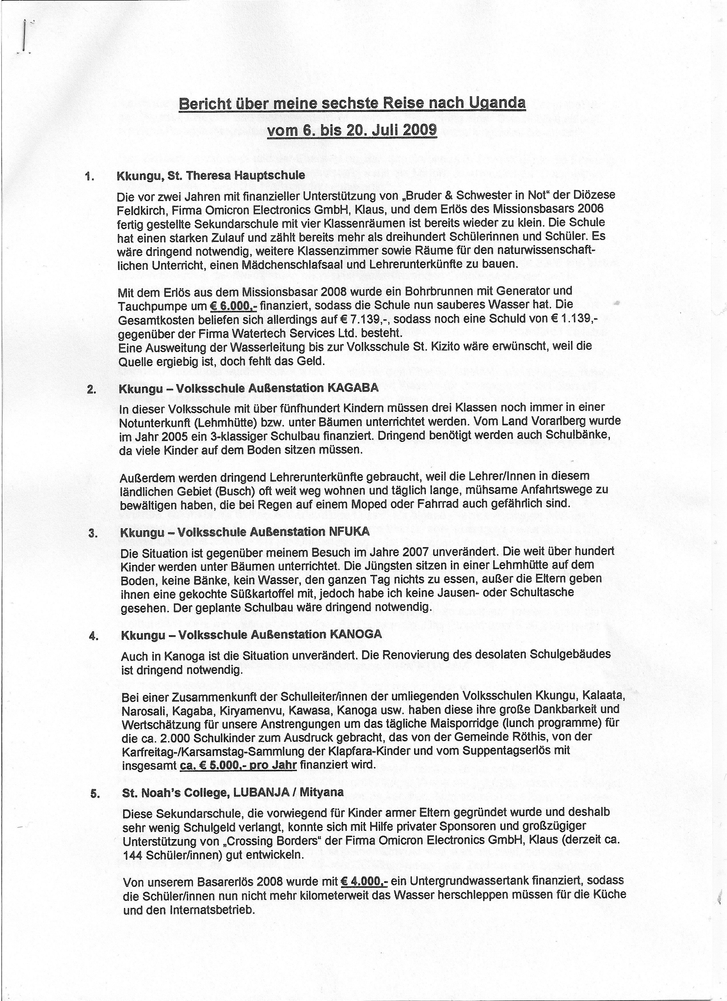 Bericht über die Reise nach Uganda im Jahr 2009 von Reinhilde Müller