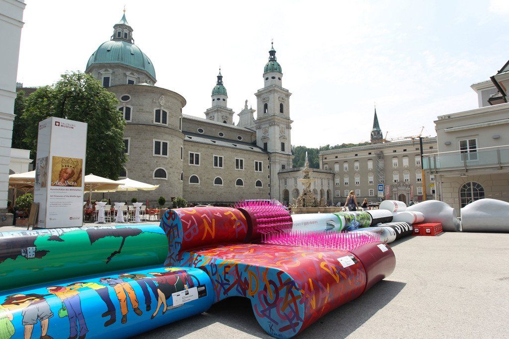Designer-Bänke am Mozartplatz