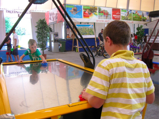 Lars und Noah beim Air Hockey