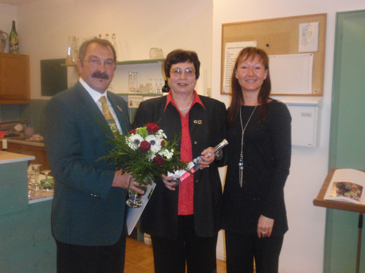 v.l. Sigmund Österle, Jubilarin Brigitte Scholz und Ekaterina Pichlbauer