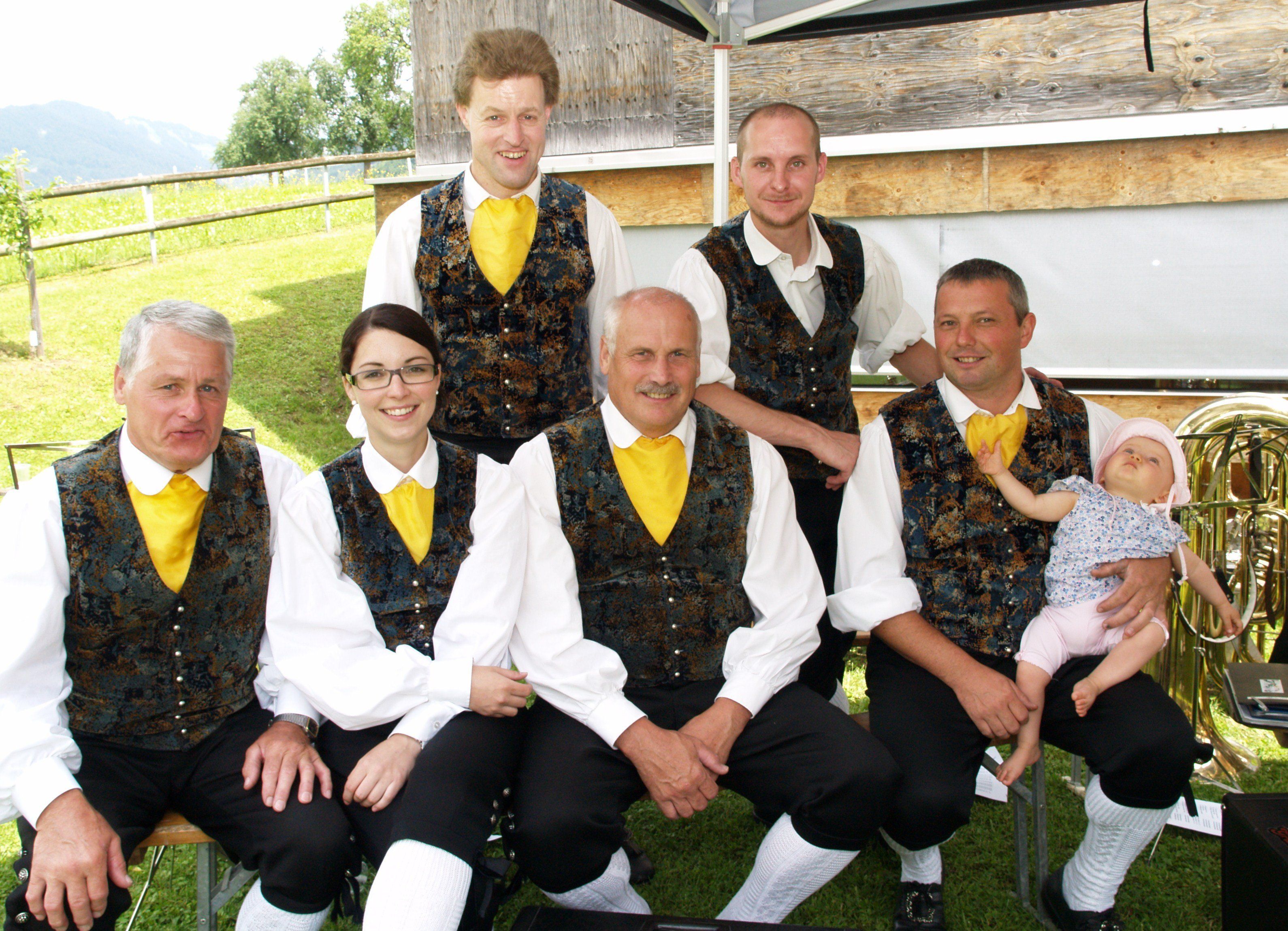 Musikvereinsmitglieder mit Baby Anna