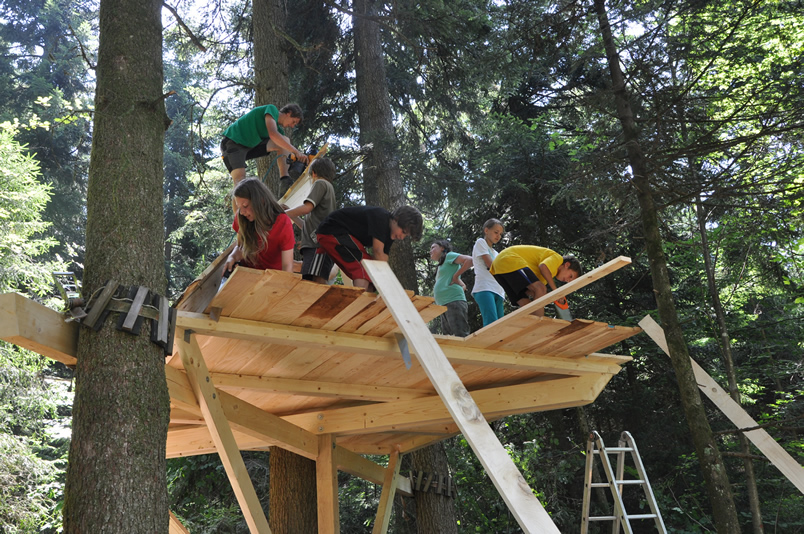Bilder vom Bau des Baumhauses der 1a