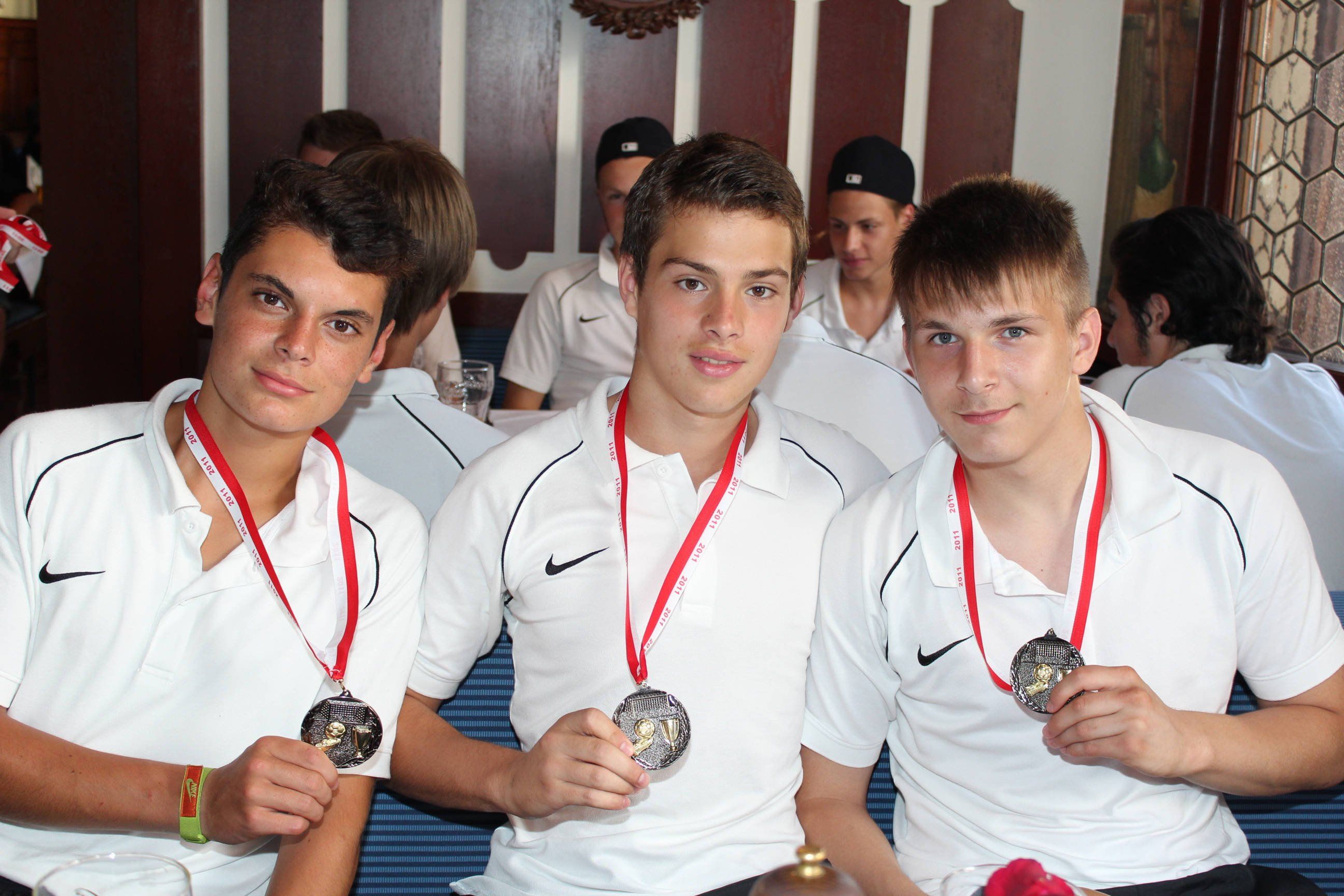Stolze U17-Nachwuchskicker Reinhard Bergmann, Stefan Jakovljevic und Stefan Jasovic.