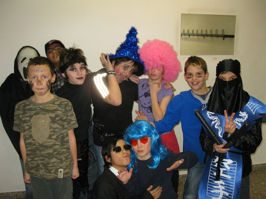 Viele bunte Mäschgerle im Turnsaal