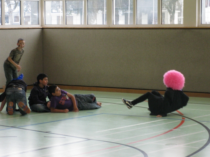 Viele bunte Mäschgerle im Turnsaal