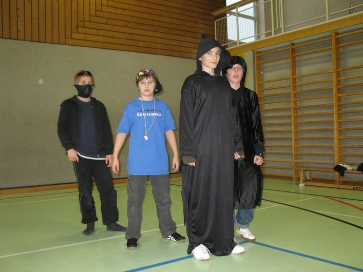 Viele bunte Mäschgerle im Turnsaal