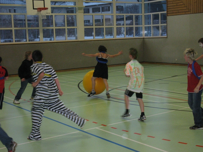 Viele bunte Mäschgerle im Turnsaal