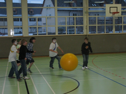 Viele bunte Mäschgerle im Turnsaal