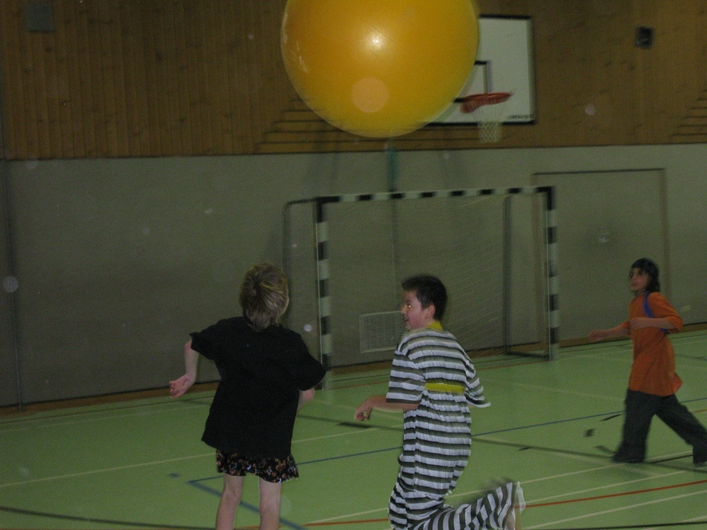 Viele bunte Mäschgerle im Turnsaal