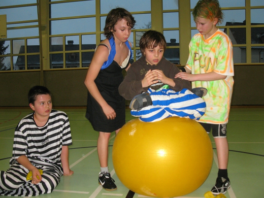 Viele bunte Mäschgerle im Turnsaal