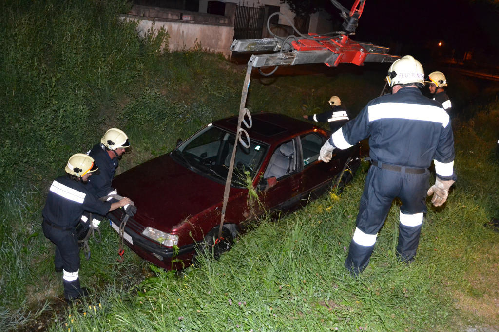 Unfall in Feistritz am 6. Juli 2012 - Pkw in Bachbett