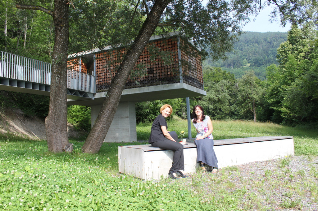 LR Kaufmann mit Obfrau Kapellenverein Carmen Nachbaur vor der Familienkapelle Fraxern