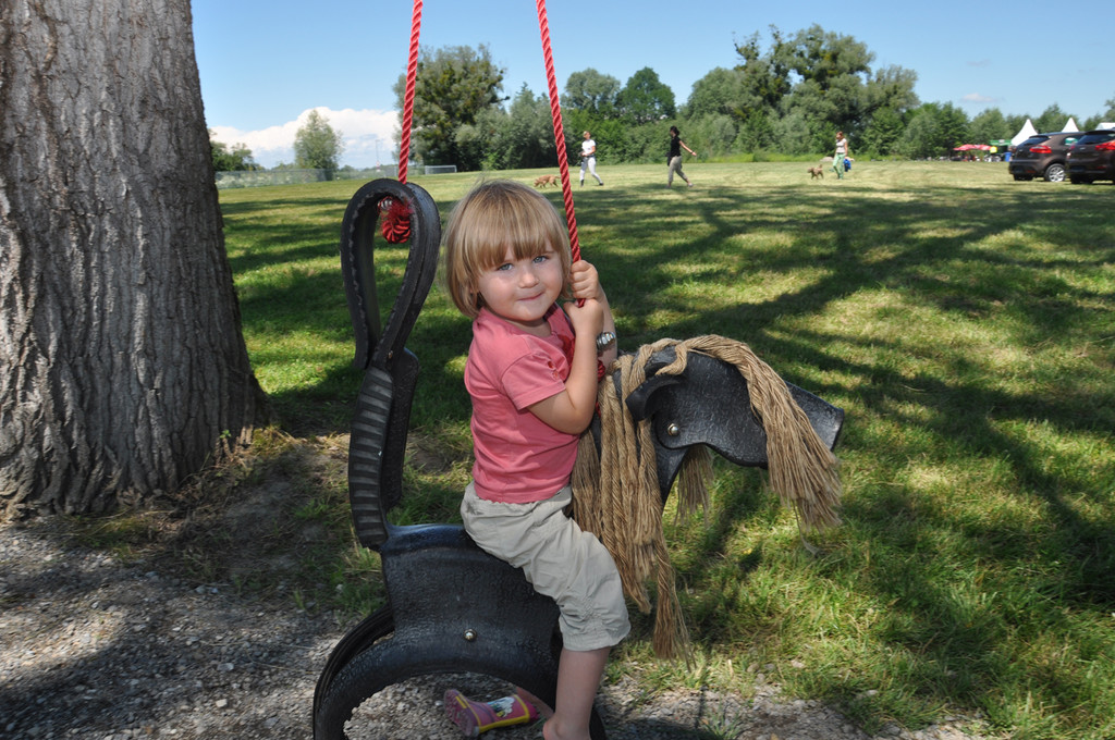 Miriam liebt die Pferdeschaukel aus Altreifen.