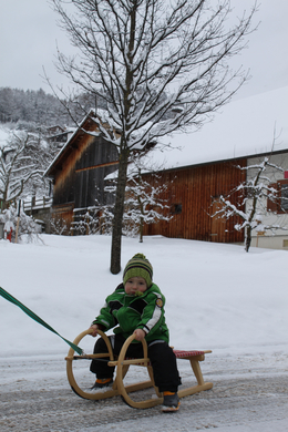 Fabian auf dem Weg zum Rodeln