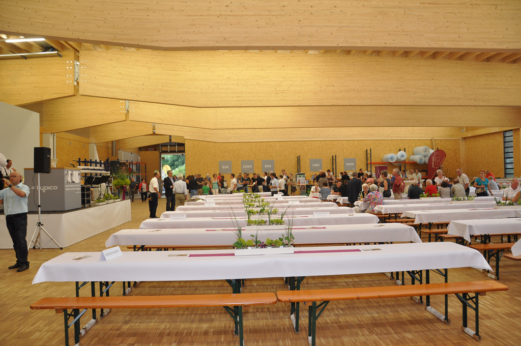 Die Produktionshalle wurde kurzerhand zur Festlocation umgestaltet.