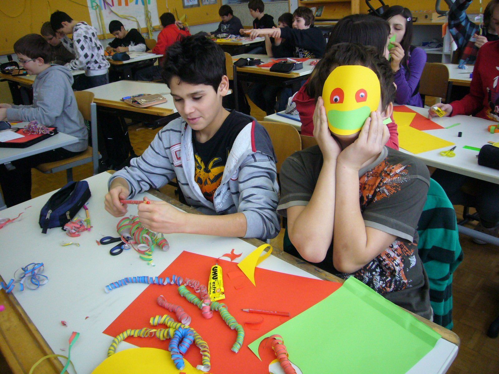 Fotos vom Faschingsbasteln in der Mittelschule Rankweil West.