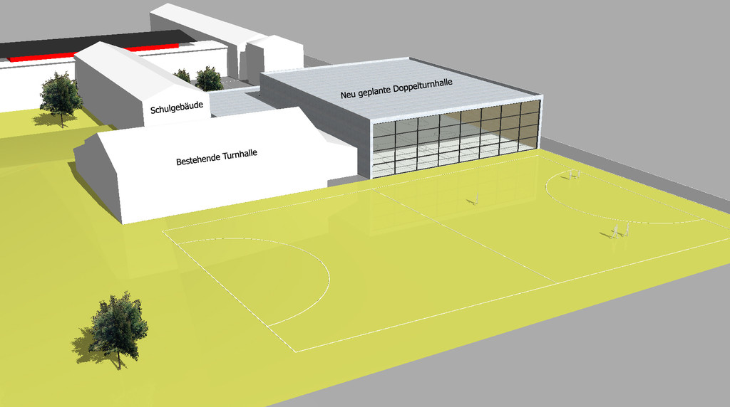 Die Doppelturnhalle wird direkt an den bestehenden Turnsaal angeschlossen.