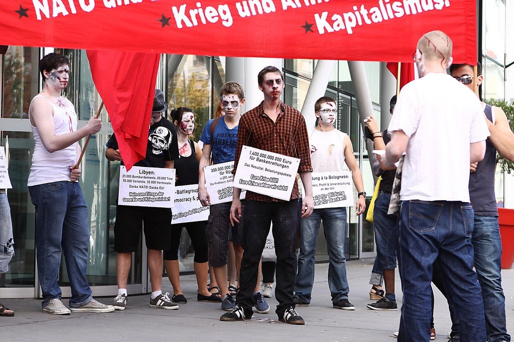 Zombie-Demo in Wien: Kommunistische Jugend gegen möglichen Syrien-Kriegseinsatz