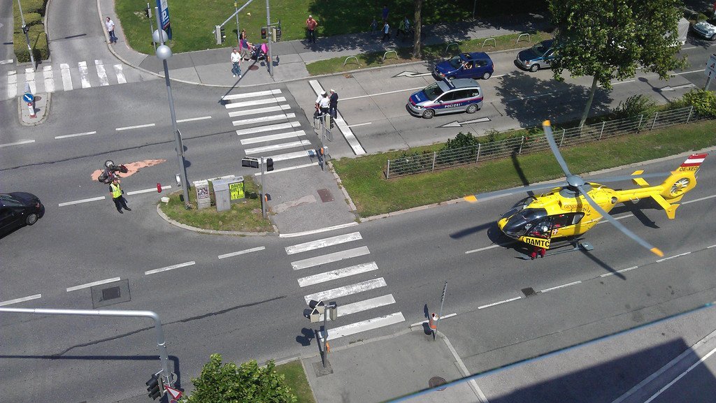 Leserreporter sieht Unfall mit Mopedfahrer in Alt-Erlaa