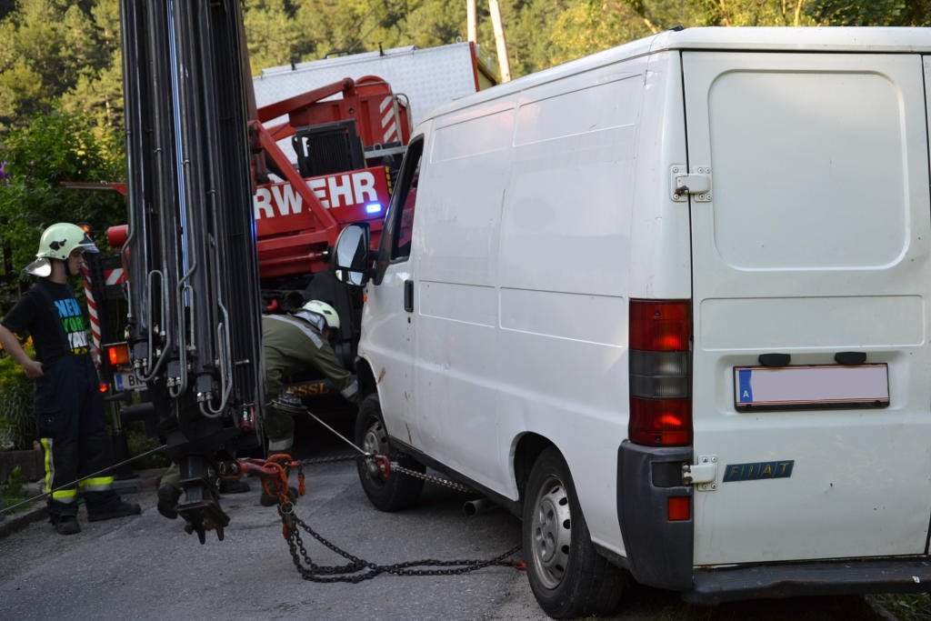 Kleinbus nach Unfall im Bezirk Baden in Bach gestürzt