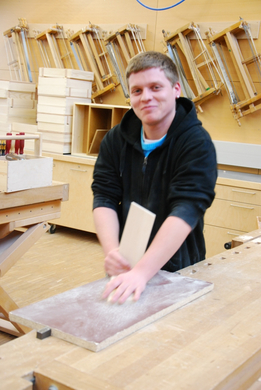 Schreinerlehrling Manuel bei der Arbeit.