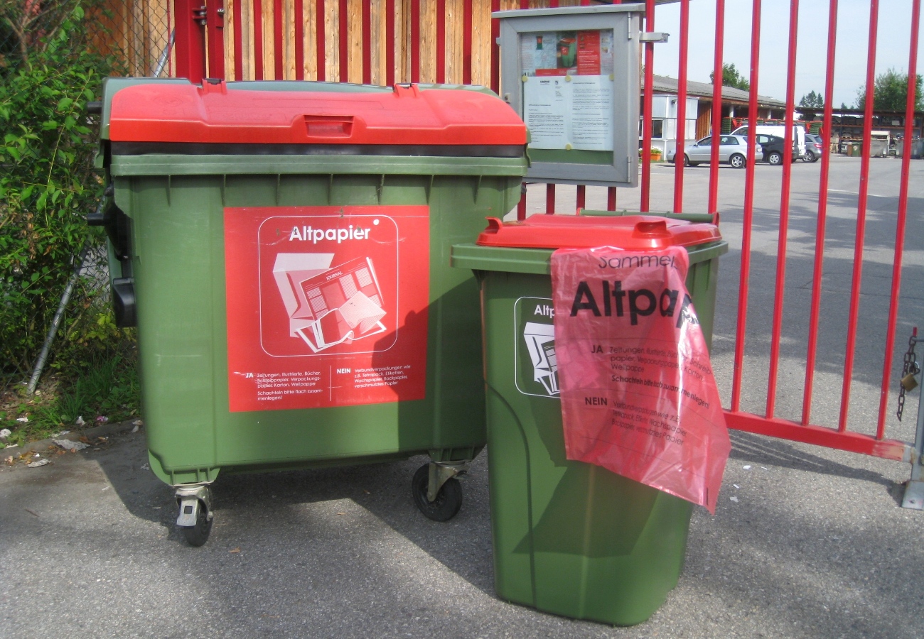 Altpapiersammlung im eigenen Bereich – Wohnanlagentonnen, Haushaltstonnen und Altpapiersammelsäcke.
