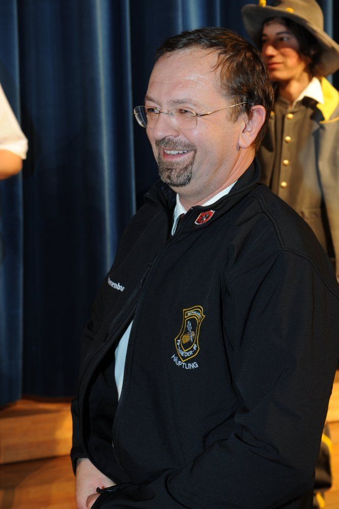 „Häuptling“ Bgm. Rainer Siegele mit der neuen Schalmeienjacke.