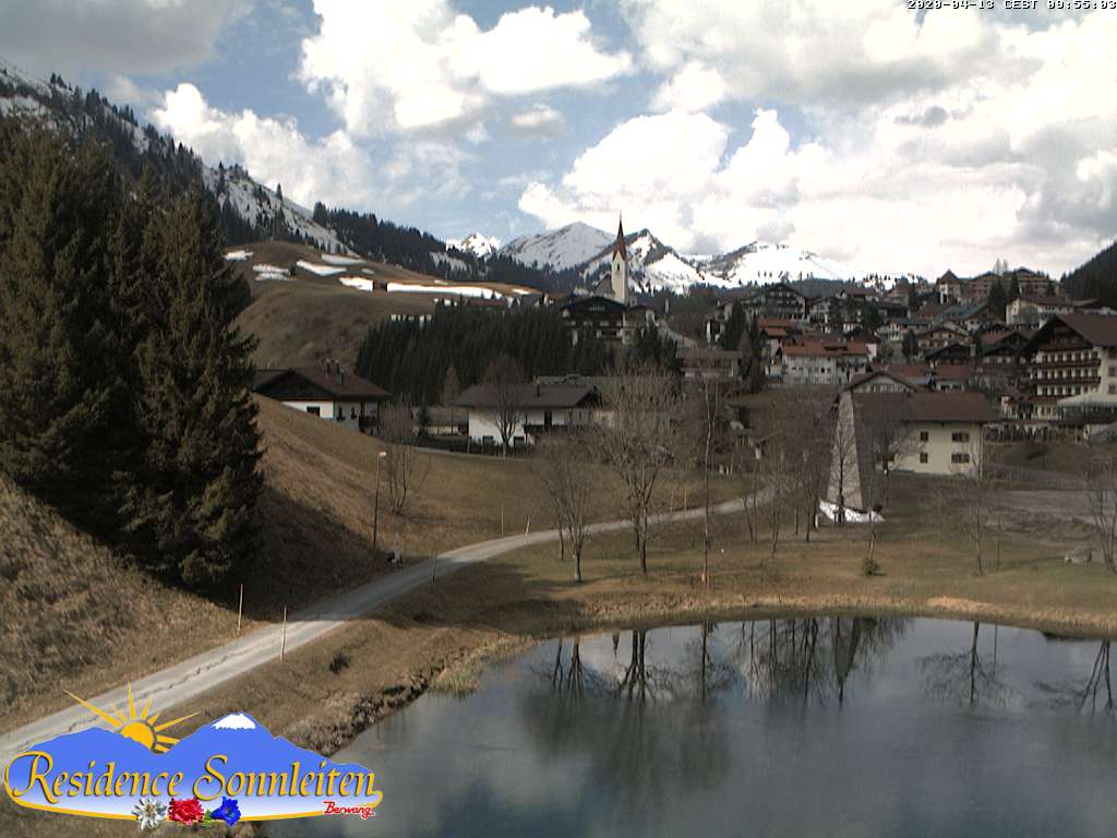Blick vom Ostrand von BErwang in Richtung der Lechtaler Alpen. Webcam auf ca. 1323 Meter Seehöhe. ( QUelle: at.wetter.tv)