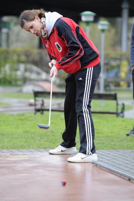 Bahnengolf Weltmeisterin Lara Jehle in Jubelstimmung