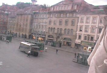 Blick auf den Hauptplatz der Stadt Graz. Webcam auf ca. 362 Meter Seehöhe. (Quelle: www.graz.at)