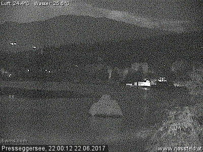 Blick auf die Südseite des Pressegger Sees. WEbcam auf ca. 559 Meter Seehöhe. (Quelle: www.nassfeld.at)